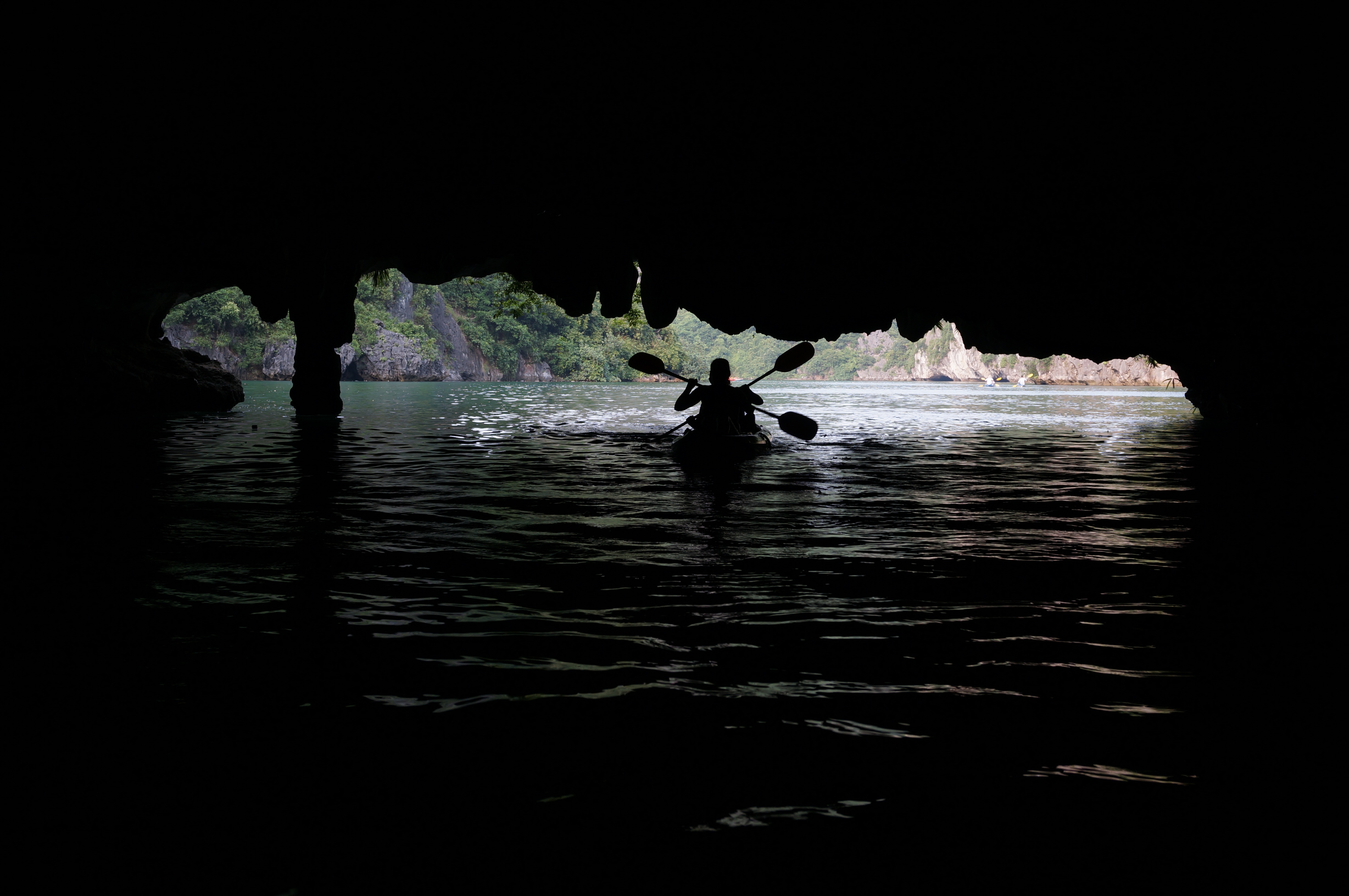 kayaks ha long bay Being the photo obsessed, camera strapped tourists we are, we opted to be paddled around rather than kayak ourselves. A bit spoiled? Yes. But every bit worth it? Yes.