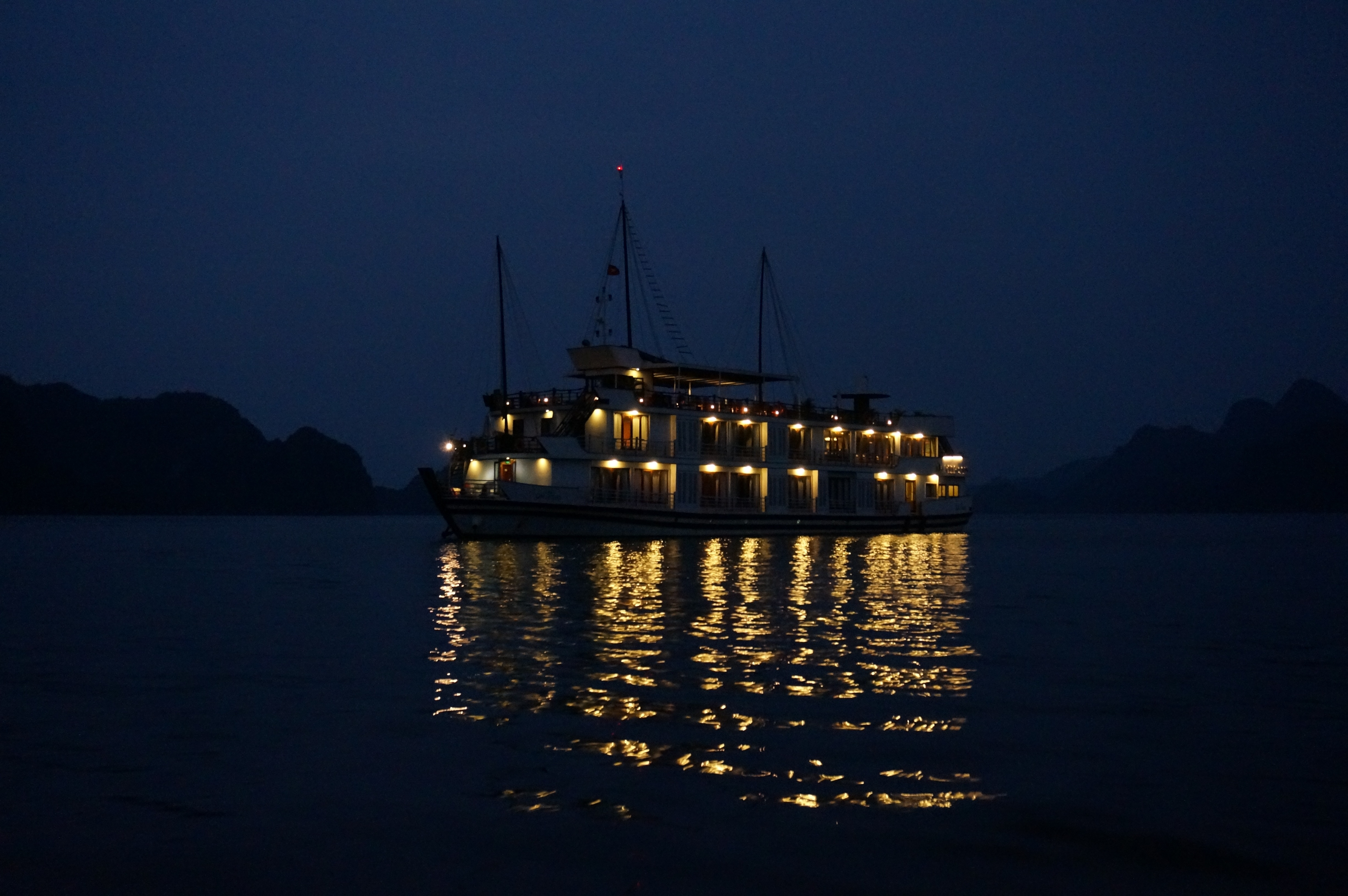After dinner there were two choices- either you could go up to the deck to watch a documentary about Ha Long Bay or you could try your hand at squid fishing off the back of the boat. OF COURSE we tried squid fishing. I am sad to report however that the only thing I caught was a cold. We did see a few small flying fish and plenty of jellyfish though.