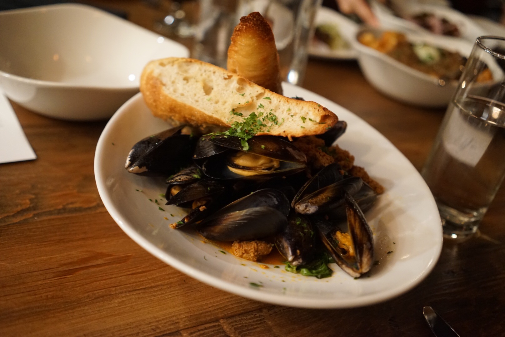 Carlsbad Mussels with oven dried tomato, chorizo, confit garlic, & tarragon