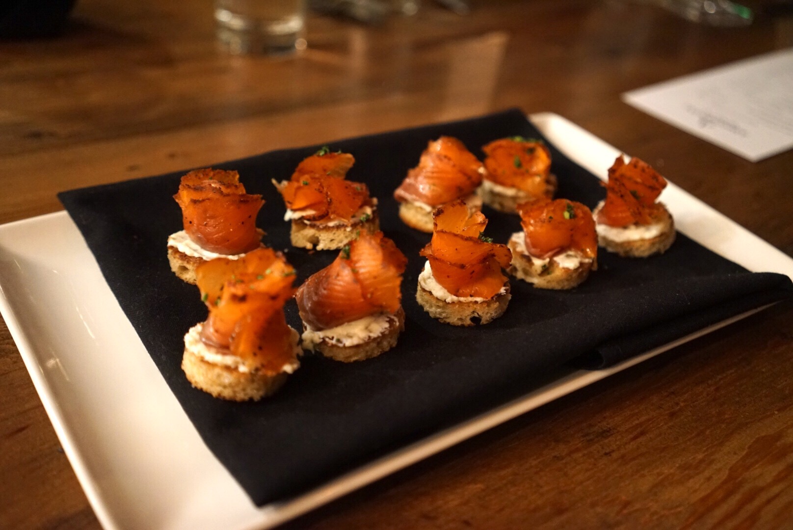 Chef Tony prepared a little treat for us between our starters & mains- pastrami cured salmon with marscapone horseradish on toast & topped with chopped chives.