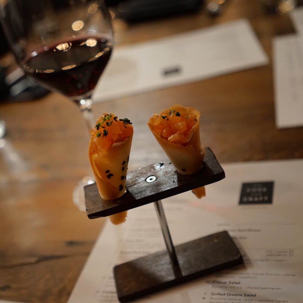 On a chilly Thursday night we booked the chef’s table at the Cork & Craft – I always try to book the Chef’s table when there’s one available!- and immediately I knew I was in for a good meal. The chefs are well organized and look like they’re enjoying their work which is something I look for everywhere I eat. I want the person making my food to be as excited to make it as I am to eat it.