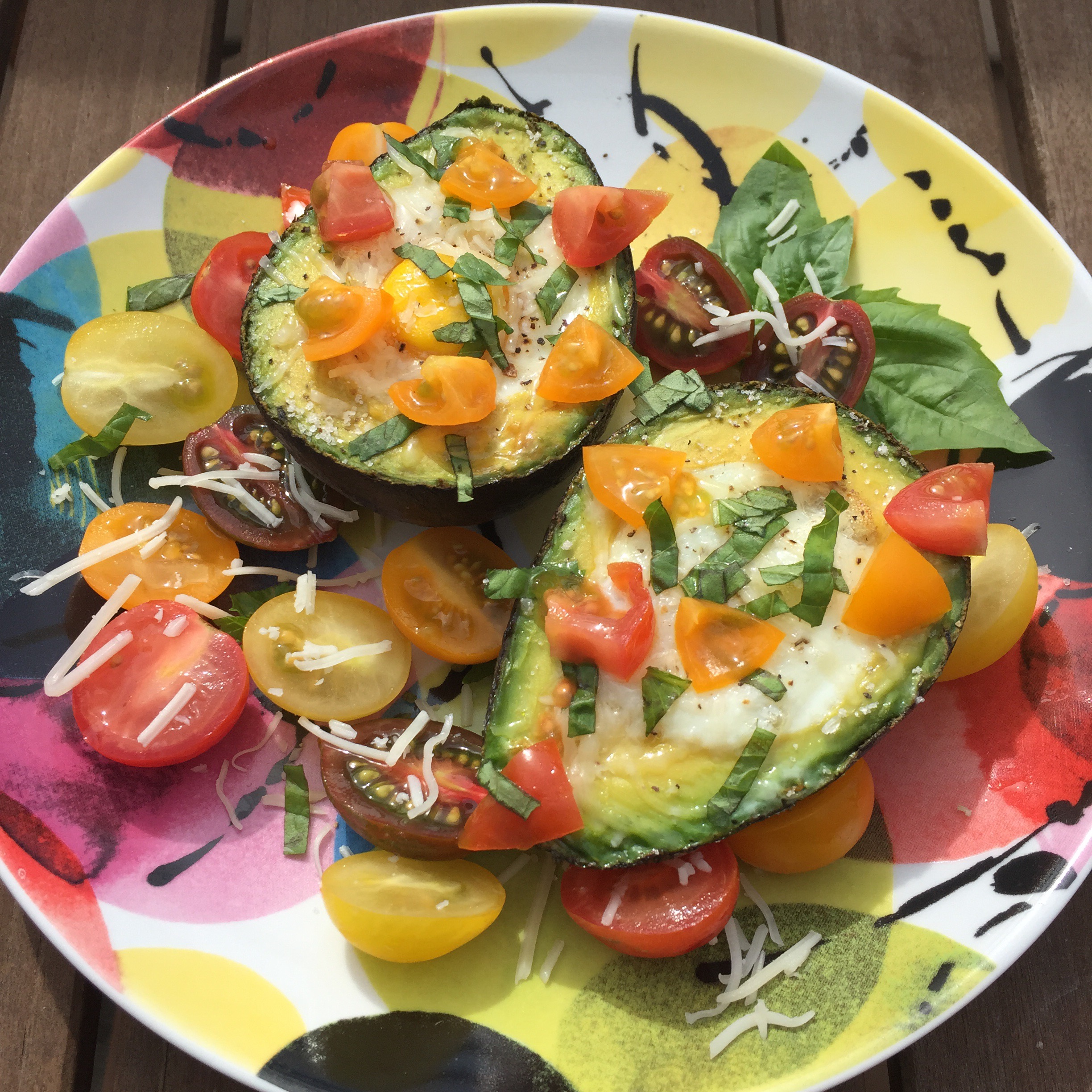Turn your oven up to 425 and get out a small baking dish. For this yummy meal you start with one ripe avocado and cut it in half. Remove the seed and admire the perfect little cups for your next ingredient- an egg (or some egg whites). Place the avocado halves in the baking dish so they rest flesh side up. Crack the egg and split it between the two avocado halves. Carefully place the baking dish into the oven and let bake for 15-30 minutes depending on how well you like your egg yolk cooked. Remove from oven and top with your preferred accompaniments- I chopped up some baby heirloom tomatoes & tossed them with chopped fresh basil, a dash of olive oil, shredded manchego, truffle salt, & a pinch of pepper. Other options are goat cheese crumbles, diced onion, Rosemary, hot sauce, crumbled bacon, virtually anything you can think of that you like with egg and avocado. And that’s it!