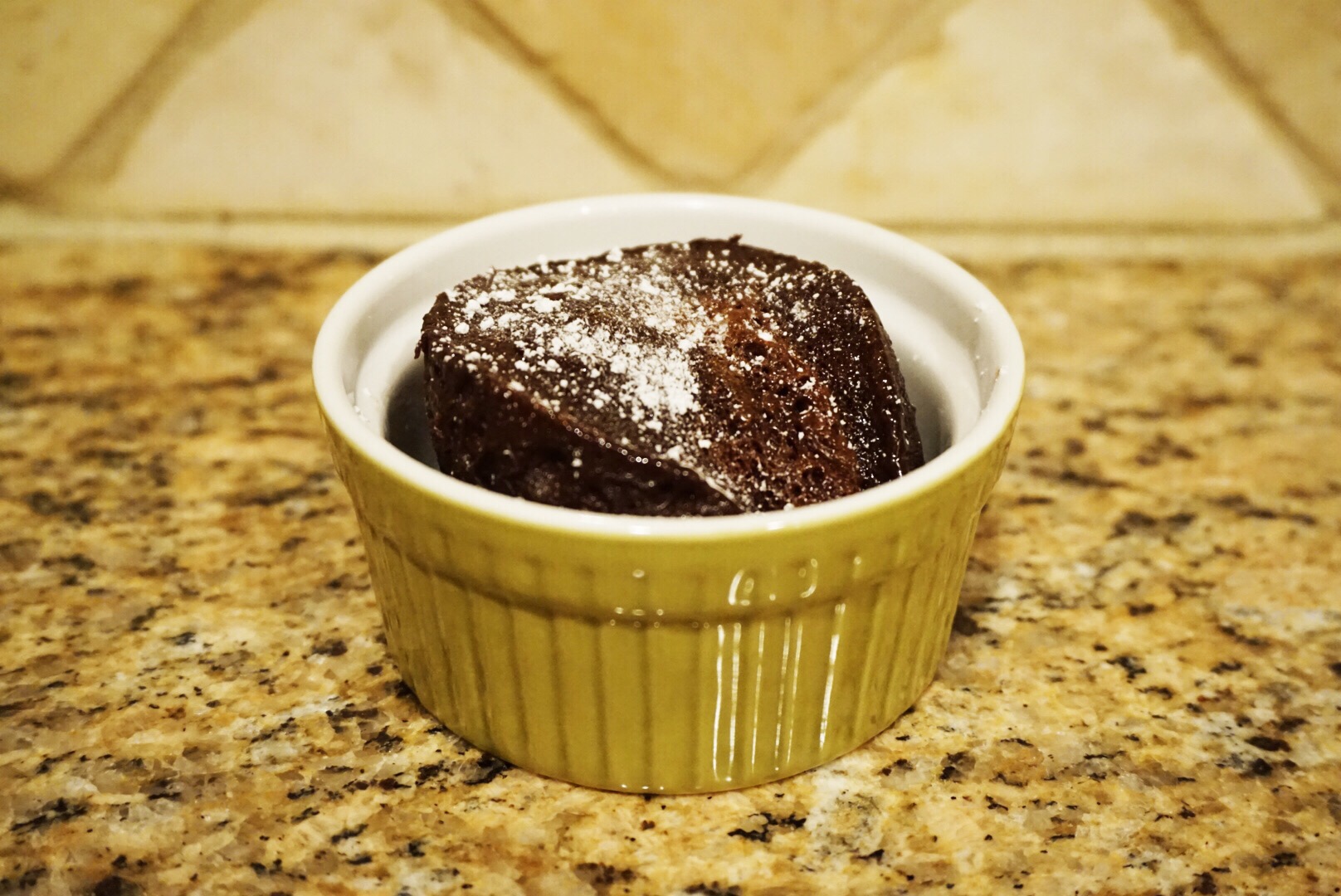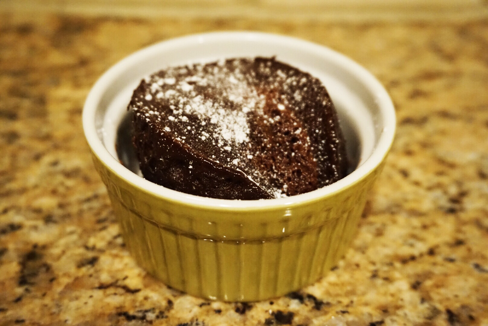 After 12.5 mins (I compromised) I used a big spoon and scooped the mug cake out of its tall mug and plated it into a smaller ramekin (cuz it’s cuter), and then sprinkled just a little powered sugar over it just for the prettiness. I took all of 3 photos for all of you before digging in. I hope you enjoy your Nutella Day as much as I just did 🙂 Or you know, whatever random day of the week you happened to be craving Nutella…. Happy eating!